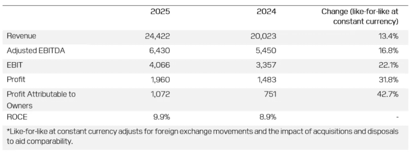 航运界网消息,迪拜环球港务集团(DP World,以下简称迪拜环球)公布2025年财务业绩。财报指出,受其港口、码头及物流业务的强劲表现驱动,集团全年营业收入再创记录,达到244亿美元,同比增长22%;调整后税息折旧及摊销前利润(EBITDA)为64亿美元,同比增长18%。全年净利润达到19.6亿美元。经营现金流增长14%至63亿美元。